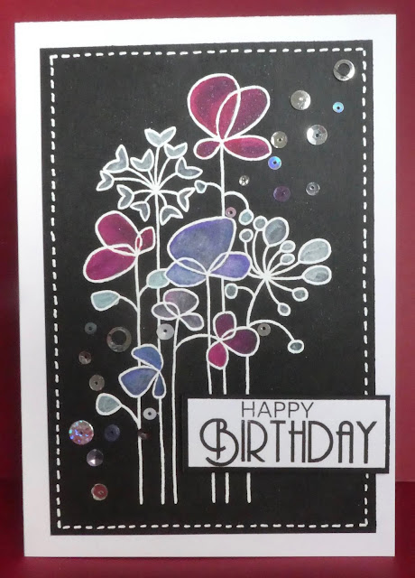This week I thought we'd try something different (for us) - Spectrum Noir Glitter ink on black.