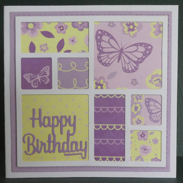 Well, the daffodils are out in my garden, so I guess Spring is here! To celebrate we did a card with daffodils. The flower die is a layering set from Altenew which was free with a magazine ages ago, which I haven't used before. The fancy white frame is unbranded, which possibly explains its weird proportions that fit no known envelope.